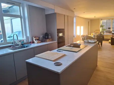 Bemmel & Kroon waar communicatie en service de ontbrekende factoren zijn. 4 april 2024 offerte laten maken en op 25 april 2024, na enkele aanpassingen, de order definitief gemaakt. Nadat de order definitief was, een telefoontje van de verkoper dat het blad 6 tot 8 mm tekort zou zijn en dat de naad niet kon komen op de plaats waar wij hem wilden hebben. De verkoper vond het zelf niet zo'n probleem. Wij wel en hebben samen met de aannemer naar een oplossing gezocht. Na ontvangst van de definitieve orderbevestiging bleken ook de door ons doorgegeven veranderingen niet te zijn doorgevoerd. Dus maar weer contact gezocht met B & K. 23 oktober 2024 is de keuken geplaatst. Na plaatsing van de keuken zouden de spatranden opgemeten en besteld worden. Niets meer vernomen, dus maar weer zelf aan de bel getrokken. Begin januari 2025 wederom gebeld, hoe het zat. De verkoper was vergeten deze te bestellen. Begin februari 2025 spatranden afgeleverd, echter er was een behoorlijk kleurverschil ten opzichte van het keukenblad en ook de maten klopten niet. Half maart is er besloten om het blad en de spatranden opnieuw te bestellen. Half mei, blad en spatranden opnieuw geplaatst, echter bleek een spatrand de verkeerde kleur te hebben. Eind juni 2025 is uiteindelijk de laatste spatrand geplaatst. Vervolgens waren er nog enkele punten die afgewerkt moesten worden. Dit is uiteindelijk eind november 2025 gebeurd.