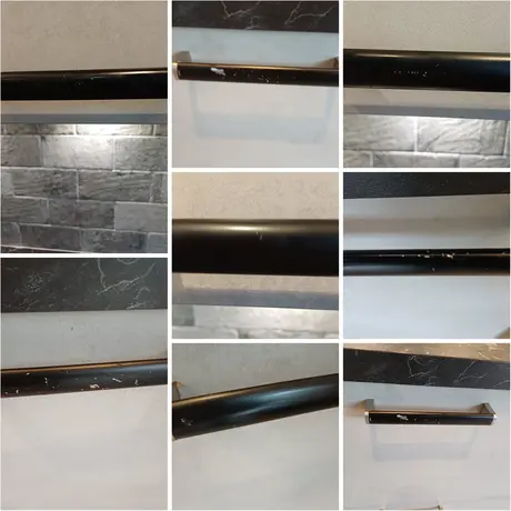 5 jaar na aanschaf van de keuken waren van enkele handgreepjes het zwarte gedeelte aan het bladeren. Ik heb een mail met foto's gestuurd naar het Keukenwarenhuis en kreeg binnen enkele weken, zonder kosten, nieuwe handgreepjes toegestuurd. Dat vind ik nou een super service!